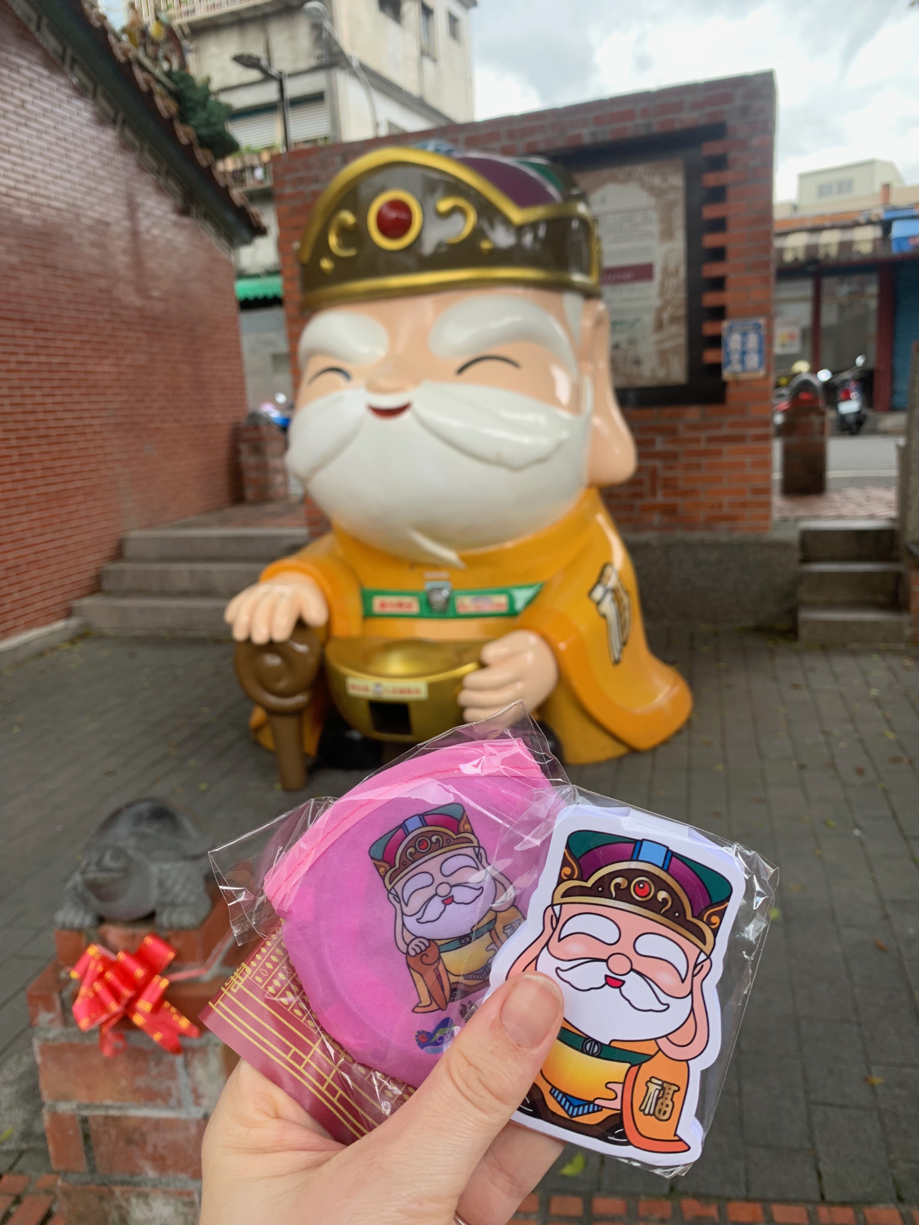 My friend got a migraine the day we were going to Toucheng, so leaving them with pain killers, a dark room and plenty of fluids I got the train. No point us both not seeing anything. Arriving into Toucheng, I put some funds into a cartoon statue man and received a ball from said cartoon statue with the gift of notebook, fan and sticker.